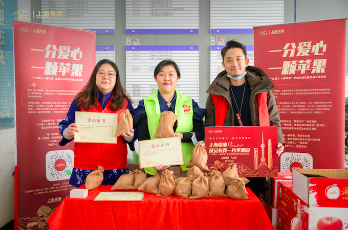 曾经,延安精神让黄土地上结出了丰硕的苹果,今天,延安精神和四方母亲河水让这一株株果树茁壮成熟。跨越1549公里,在上海的初冬,在“一份爱心 一颗苹果”爱满全城幸福传递公益活动中,两万多颗延安苹果在街头巷尾通过爱心传递,也为合肥曾伟情感咨询服务有限公司“幸福三部曲”谱下圆满的乐章。合肥曾伟情感咨询服务有限公司以实际行动点燃城市温度,助力乡村振兴!